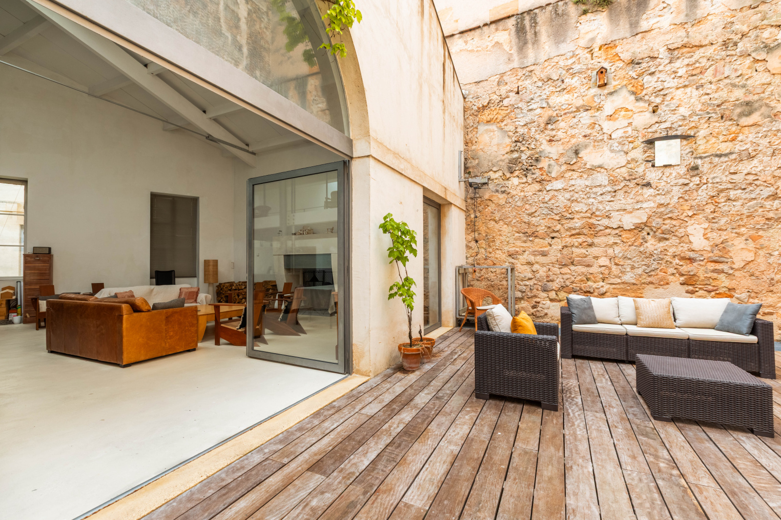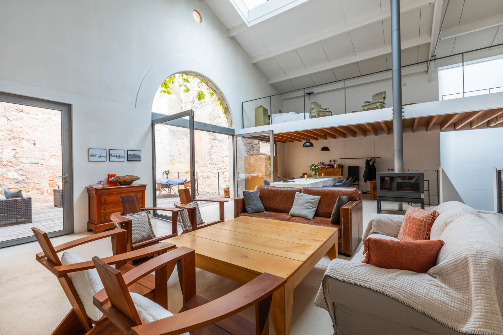 Une entrée, une très grande pièce de vie de 110m2 avec son plafond cathédrale et son immense cheminée, donnant sur une belle terrasse intime sans vis à vis, une grande mezzanine, une cuisine américaine avec son îlot centreal, deux chambres dont une avec sa terrasse privative et deux autres chambres en contrebas. Une maison alliant le charme de l'ancien et le contemporain. Un garage aux volumes exceptionnels plus un espace arrière semi extérieur à exploiter pour le sport ou pouvant être dédié à un espace bien être (spa, sauna etc..)